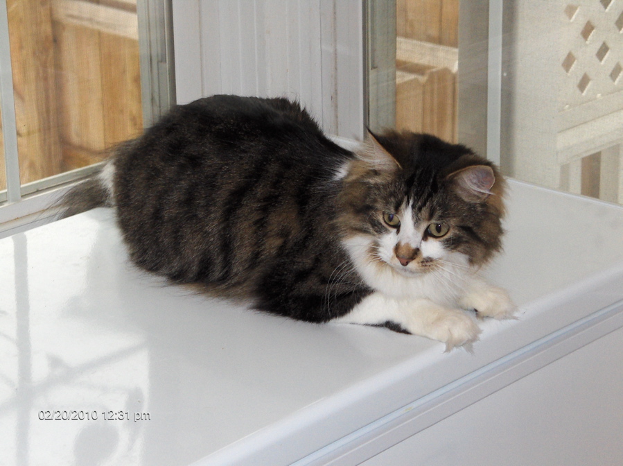 Oh, can you tell in the photos how welll he is acclimating?? He's been hissy, but not too bad. Growly, but not too bad with that either. He's scared, which is to be expected, but today, he just kinda shone. He's been sweet, talkative, and very much the camera ham!