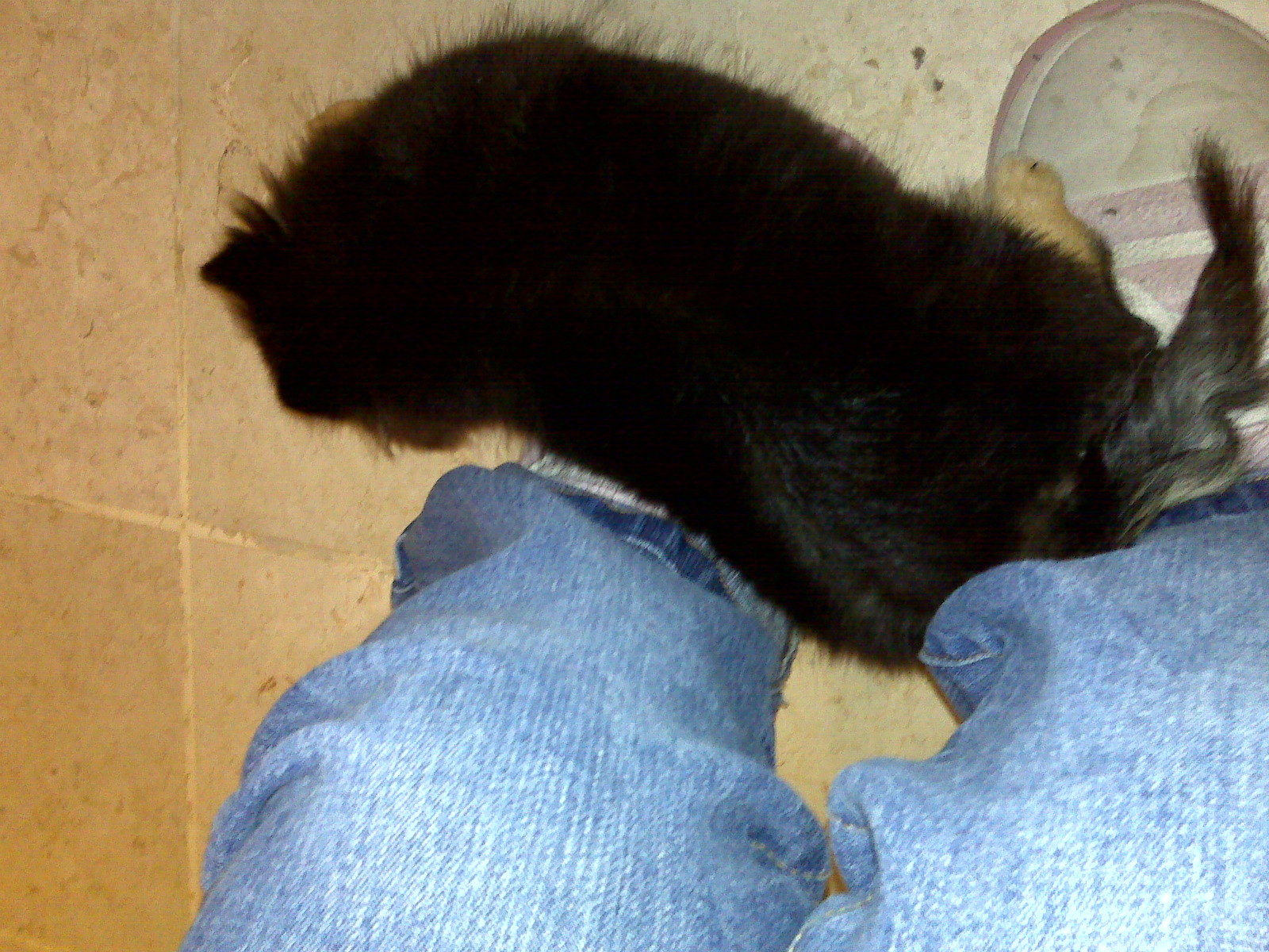 1.- this is what it looks like whenever I´m at the mirror/standing/etc.. he´s literally on top my slippers