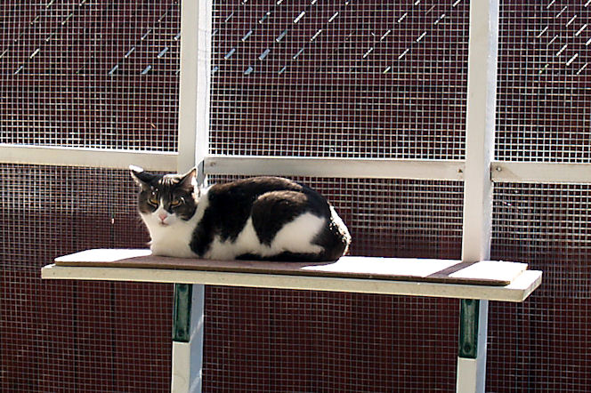 I just thought I would share a few photos of the kitts and their outdoor screened patio fondly known as the Kitty Kabana. I also couldn't resist the photo of Princess Chelsea Pearl in the Rock Star box...LOL. The other kitty is my big boy, Franklin.....![]()