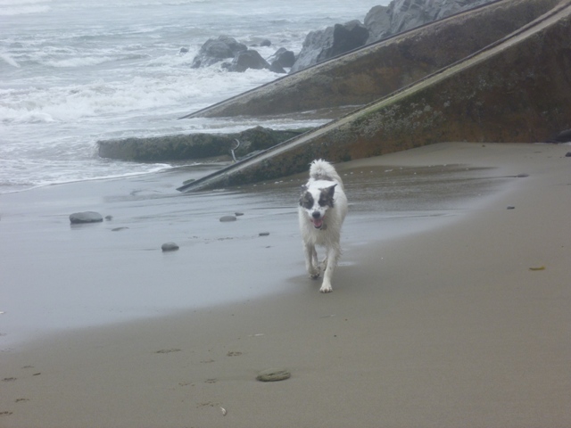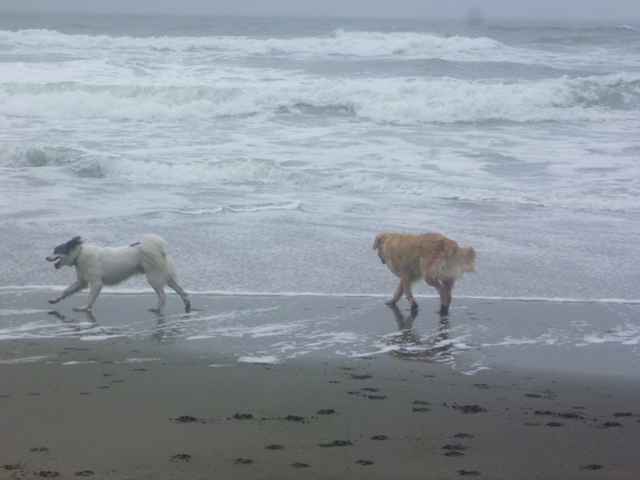 Today we took Zoee and Taggart to the beach. It was misty and freezing!!! But the doggers had fun. We met up with a friend and her dog.