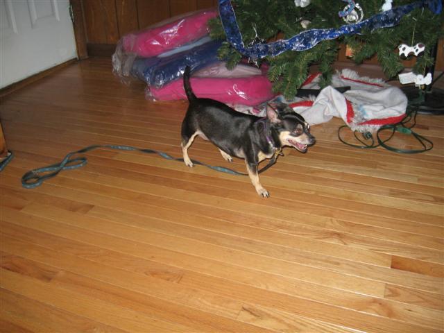 She is fine with the cats, and she has made it clear to all 5 bichons that she may be small, but she is MIGHTY! Marlin has taken the worst of her antics. She is only after them if one of them finds a crumb on the kitchen floor -- somehow, she has laid claim to ALL CRUMBS!