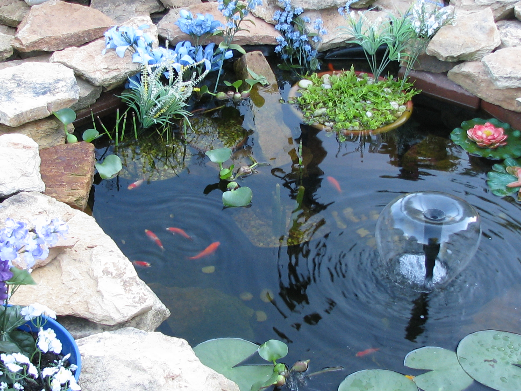 For MANY years I've wanted a goldfish pond. I have a real pond with bream and bass and 3 carp but still I wanted a goldfish pond. Effective May 20, 2011 I got my wish. I did all the reserach and supervision (smile) and he did the work of digging out the hole in varying depths. It's about 400 gallons and the water part is 4' x7' and I just love it. I find the little golfish very amusing and smart... and they're pretty imo. You should see them come when I feed them...cute little fellers.