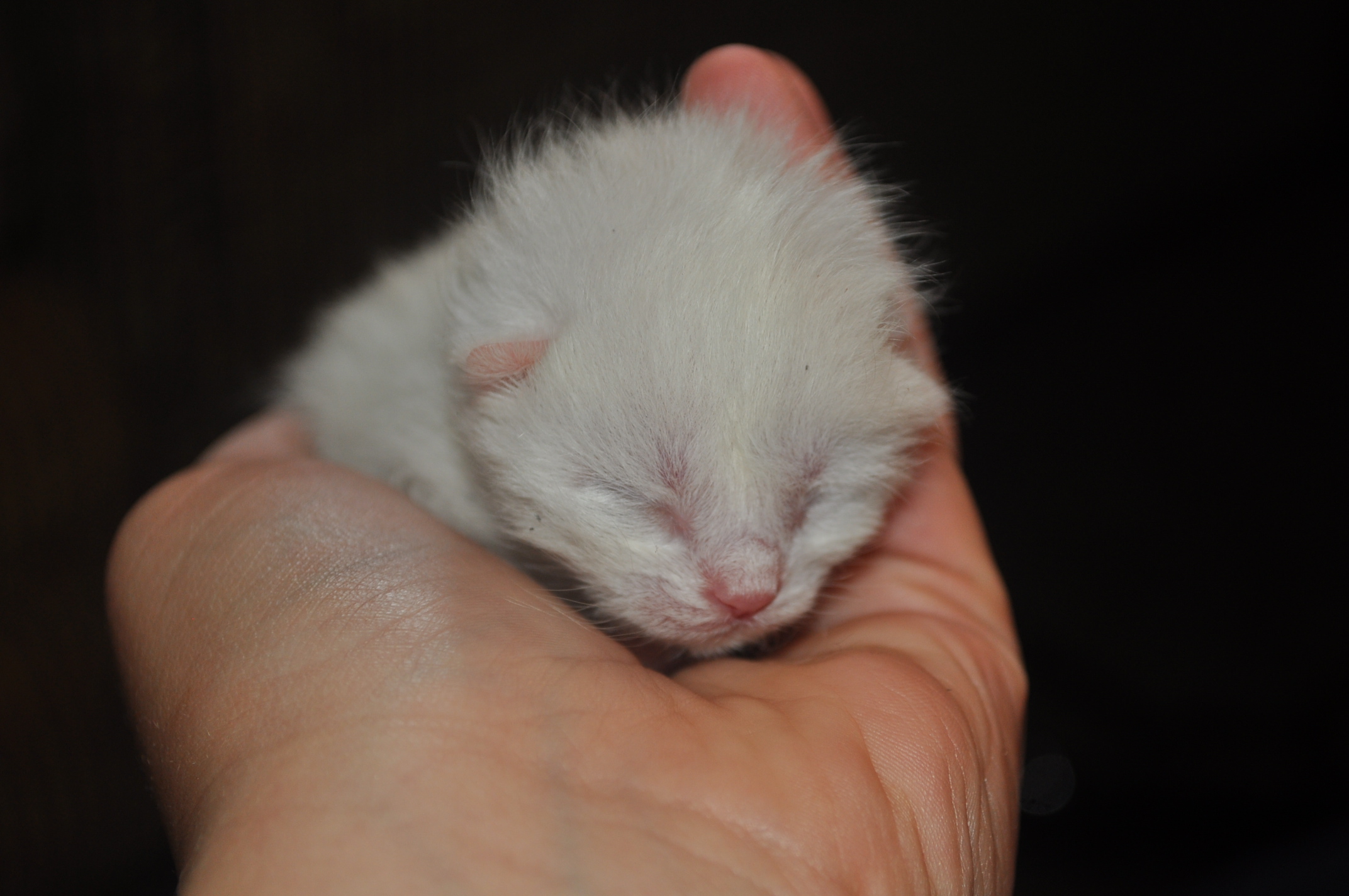 Anyway, Bella is an excellent little momma. She couldn't be any better, and she trusts my mom and I with the babies. Hershey is a little Torbie, therefore definitely assuming that Hershey is a "she." She is the most vocal and has been the first to escape from the nesting box. Jellybean is a little tabby, she's kind of quiet, but is super sweet. Moonpie is white, identical to Bella, and she is vocal sometimes, but can also be quiet. Moonpie was immediately my favorite when they were all born, but I'm growing quite partial to JellyBean and Hershey as well! They are all so very sweet and I can't wait to watch them grow over the next 8 weeks.