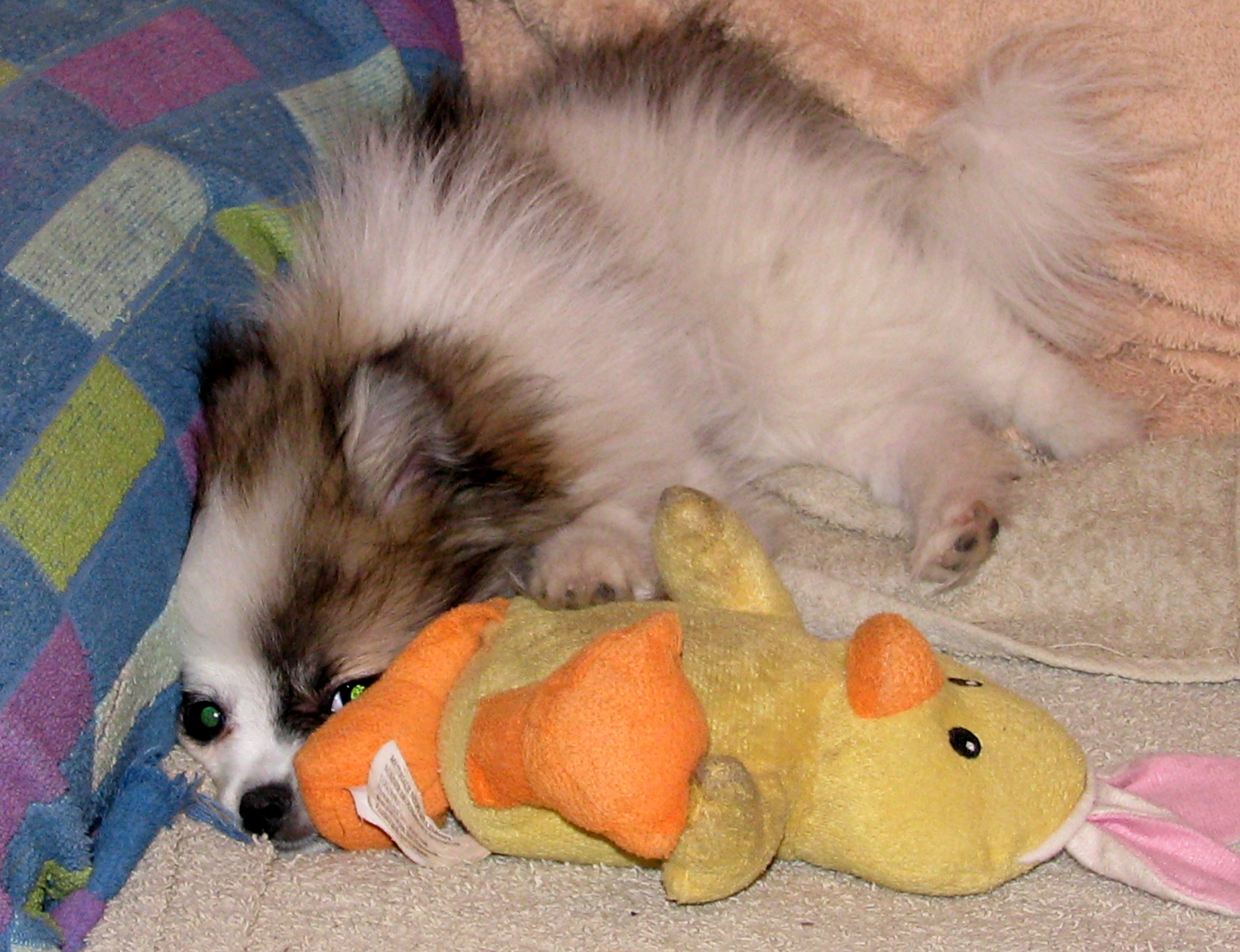 At night when she's tired is when she is her sweetest. I put her on the couch and she lies on her back and she is calm and I can rub her tummy and she loves it...and so do I.