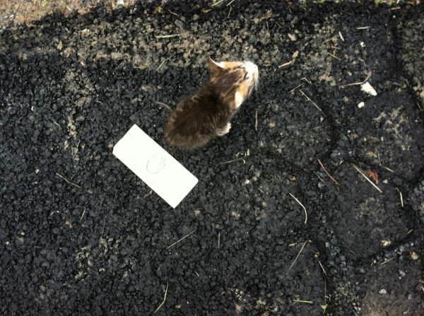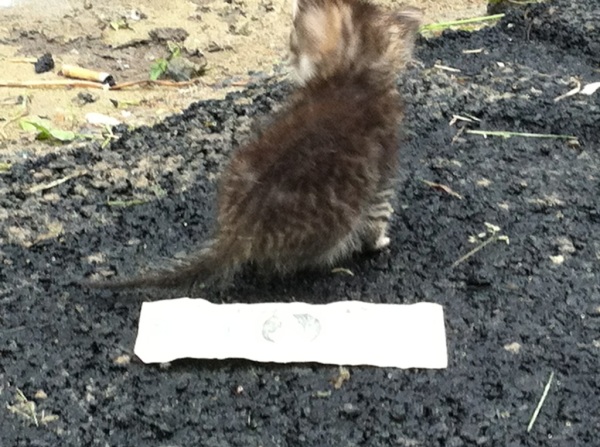 THIS BABY WAS ABANDONED BY ITS MAMA AT A JOBSITE, THAT IS A DOLLAR BILL NEXT TO HER (THAT'S HOW SMALL SHE IS) , IT'S SAFE AND WARM RIGHT NOW BUT NEEDS HELP.