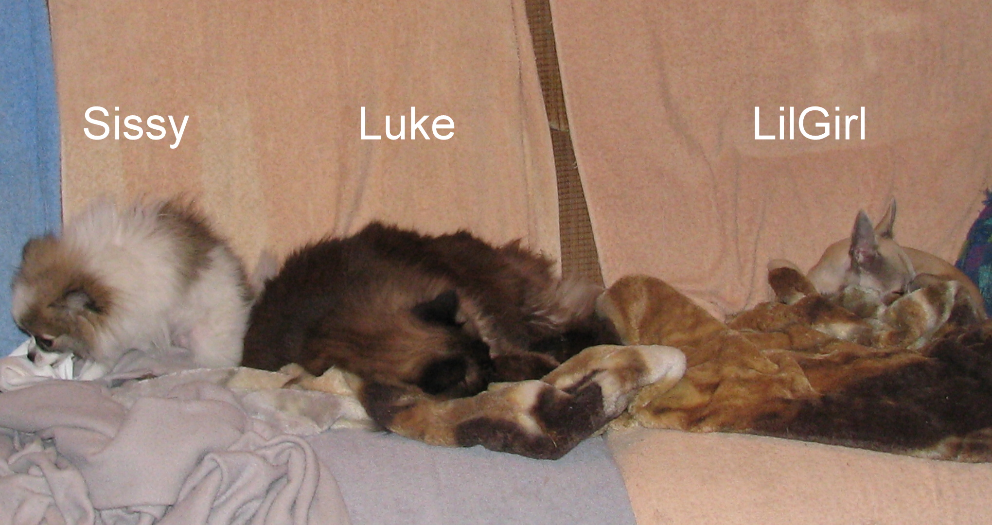 Oh, I must mention Annie who has the patience of a saint when BOTH Sissy AND LilGirl are in her face & jumping on her when she lies down. ok, that's it.