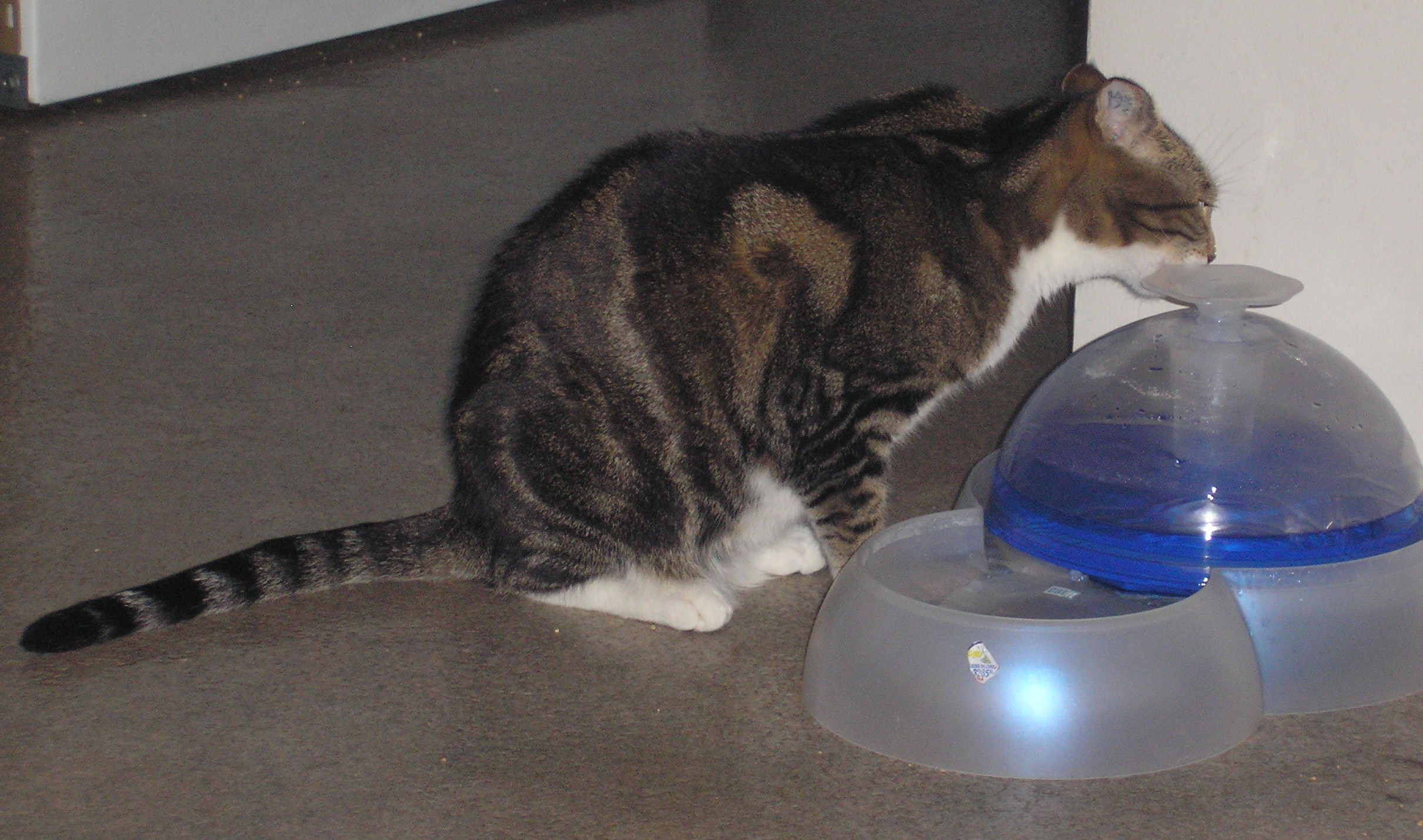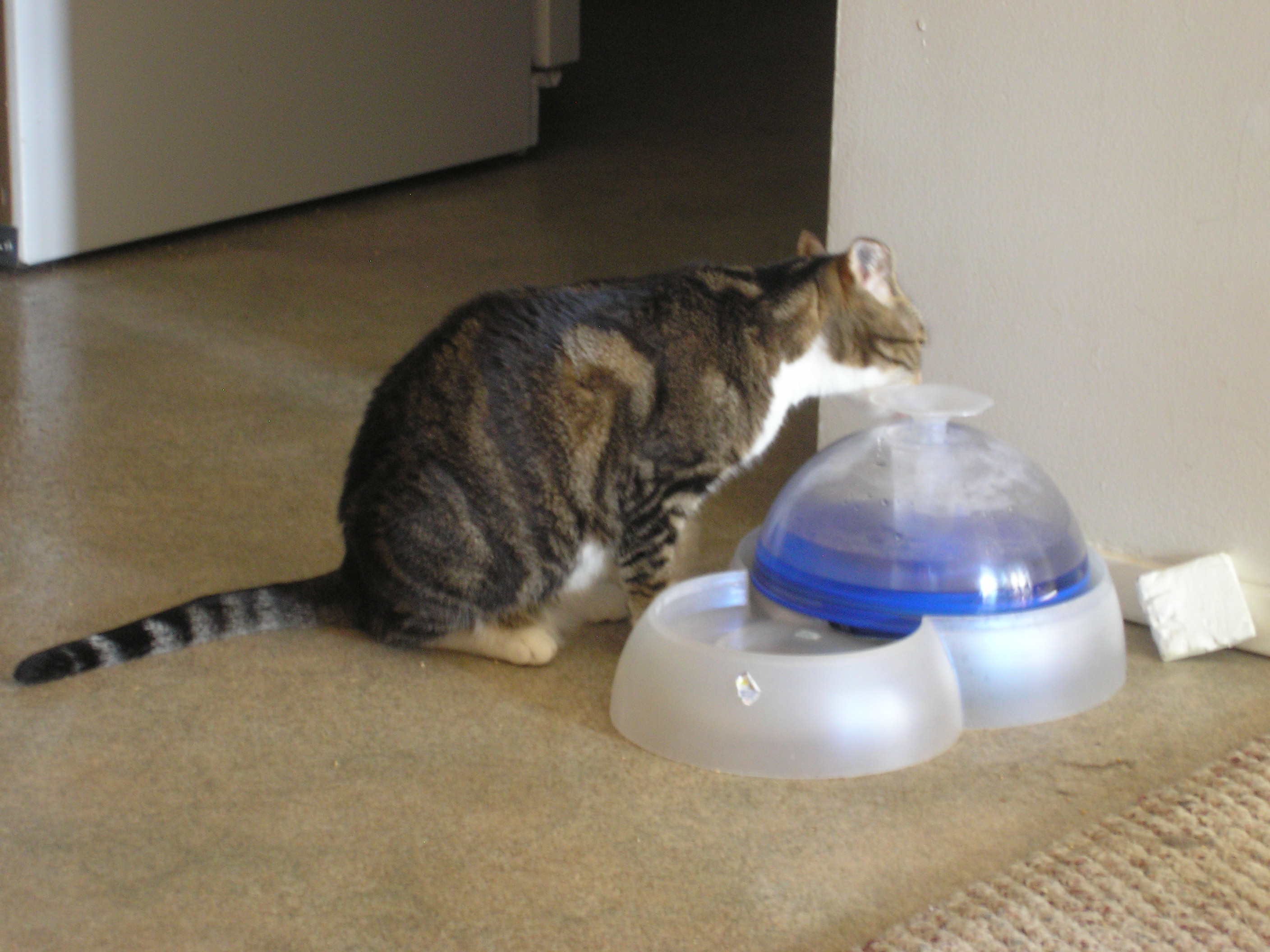 Oscar had some purring lap time, then went to groom his brother Cole. Zoe had a drink at the water fountain.