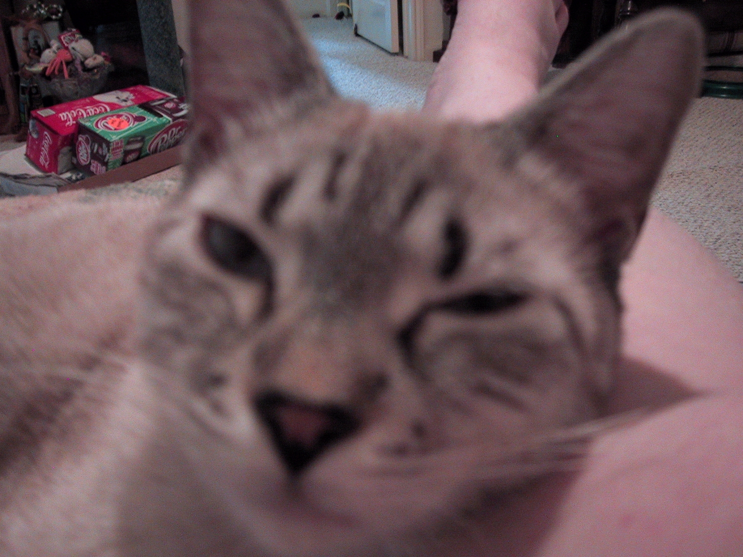 I will get a photograph or two or three when I have a chance. She's not on the couch right now but down in her little hideaway in the cabinet under the TV.