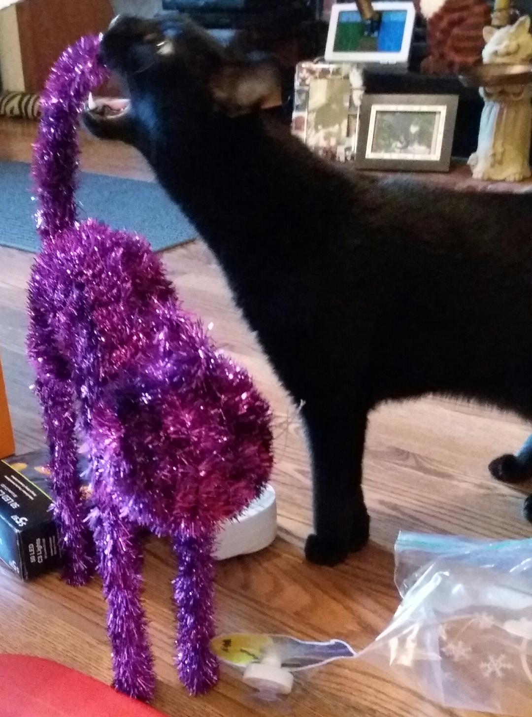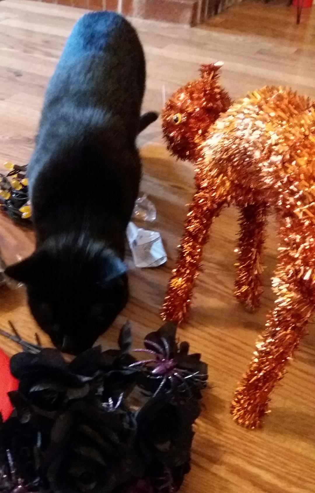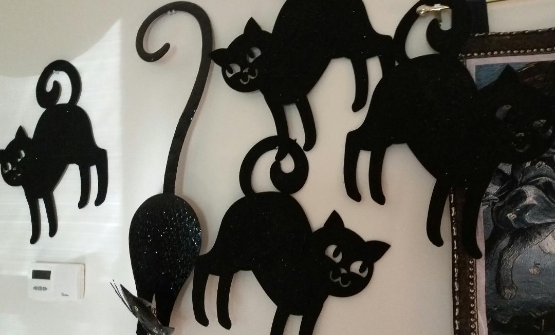 When I got up the other day, there were black kitties all over the wall. Somebody can't wait for Halloween to start.
