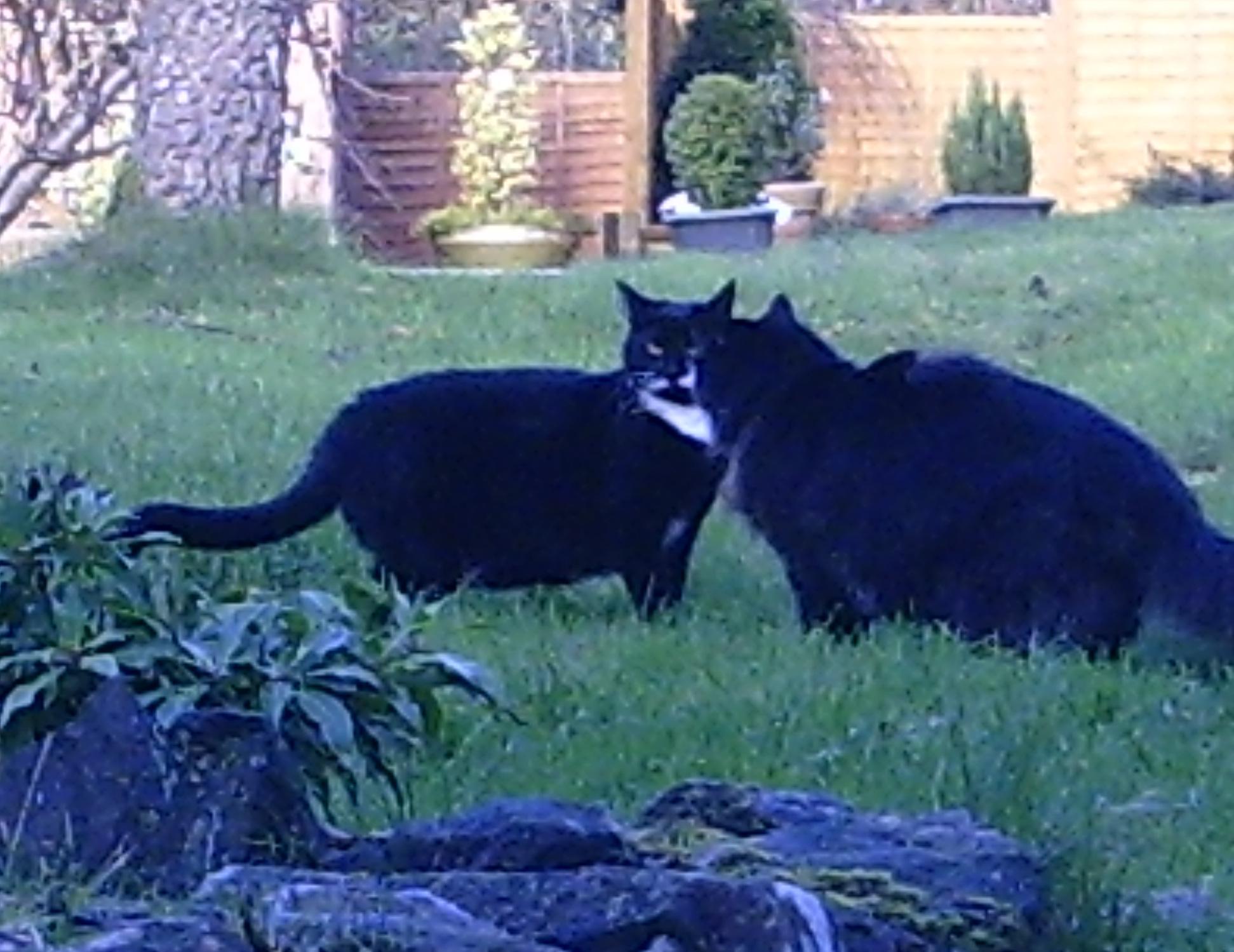 First one shows Candy (who is hiding her puuuurrrrretty face from the camera) and Tom out in the garden. They had followed me out to supervise the bin being emptied.