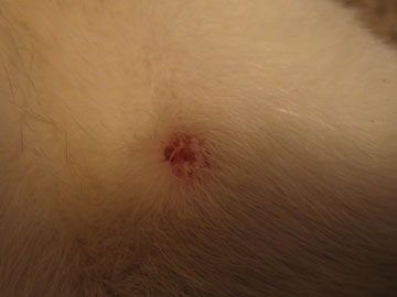 but still...I noticed tonight that Nebo has a small lump on his leg. I gave him a bath today and brushed him and did not notice anything during that, I noticed it late tonight.....either I'm blind or it popped up suddenly.