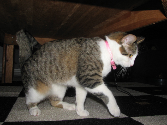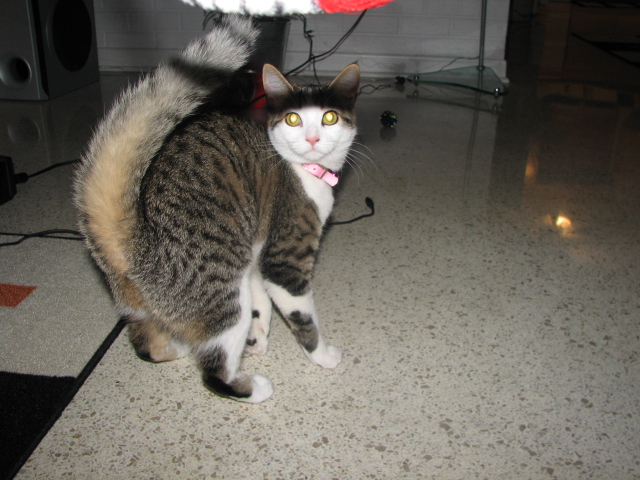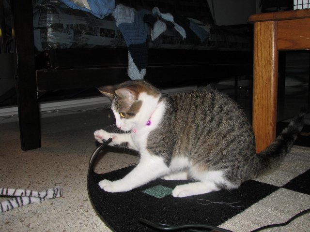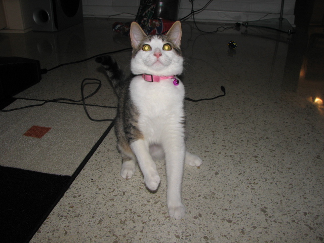 [B]My brother got a kitten today. She is 6 months old - we got her from Pets Mart where a local rescue keeps some of their cats. The name on her paper said "Ms. K" but my brother wants to change it. Some of the names that we came up with are in the poll.