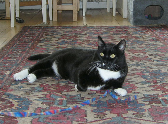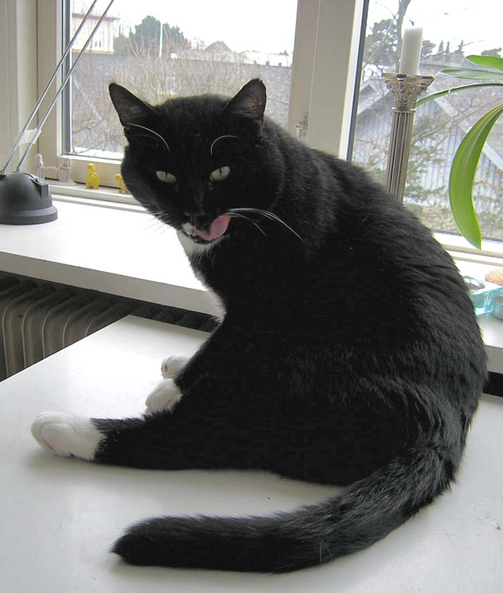 I joined a group of catloving people recently, they are from Germany, South Africa and USA. So far, we have met for dinner in town one time. An American girl and her danish husband went to Boston two days ago, so I'm now catsitting their gorgeous big tuxie, Malcolm.