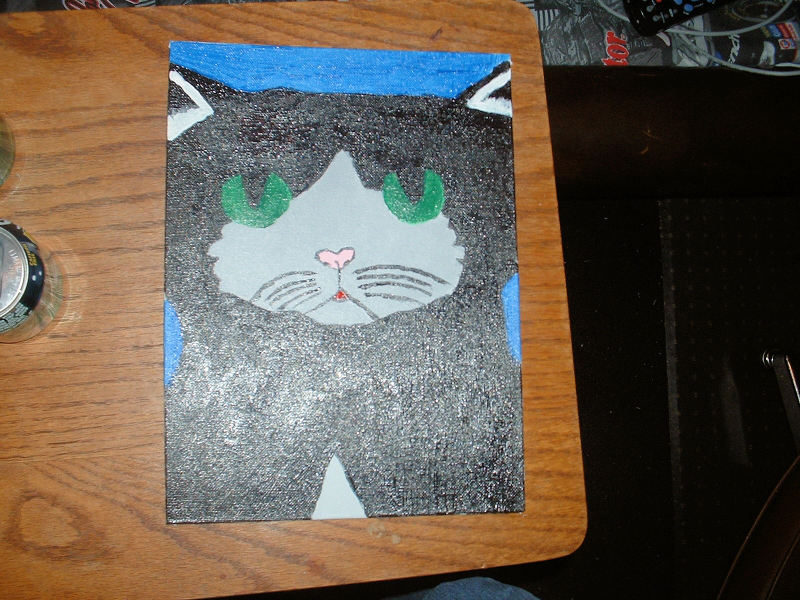 Here is the cat and angel..ourlined..not done yet