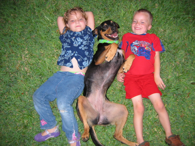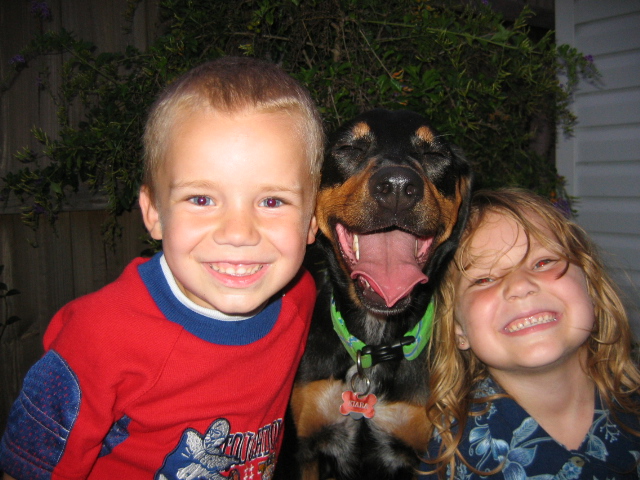 We went out to dinner with them and went to a restaurant where you can bring dogs on the patio. There were these obnoxious little kids sitting in the table next to us saying that "That dog is really mean" (When Kiara was trembling under the table because they were being so loud.) Truman spoke up and said "No she's not mean... see.." and pat her on the head. Gosh I love these kids. He was getting very upset because they kept calling her mean.