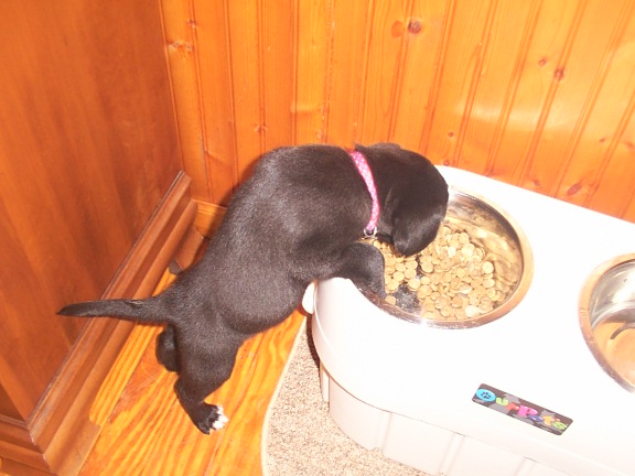 I'm gradually staying ahead of the game here, with the potty breaks, food stations (Senior and Puppy food juggling tricks) and the play periods!!!! However, I still haven't come up with a name for her.