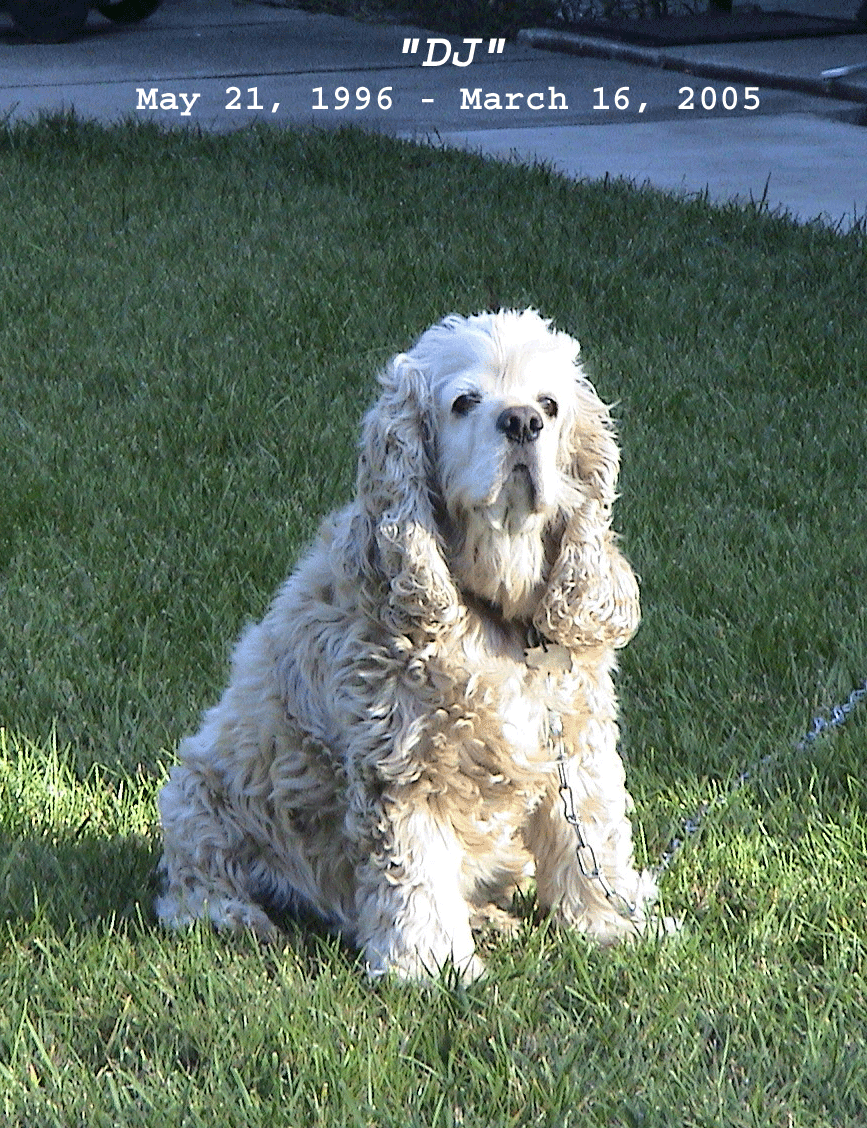 Here are some pictures of our beloved DJ Dog. He went to the RB on March 16th, 2005. It was so difficult not having him around the house, we got Zoee on April 8th, 2005.