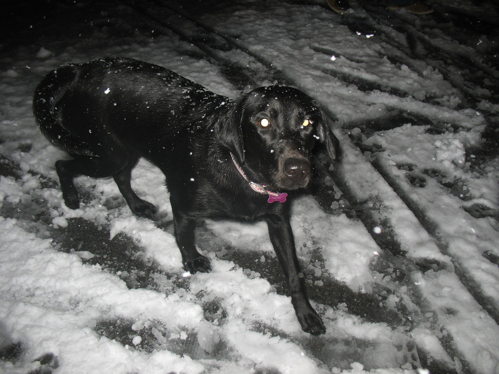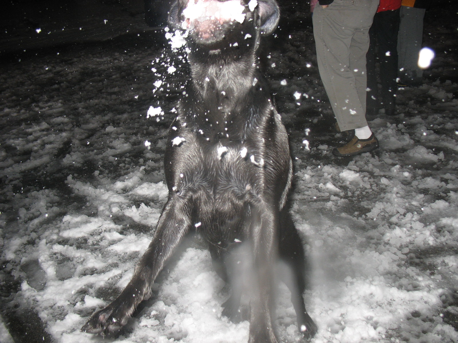 I went outside just to look and see how deep the snow is and I see two black labs playing in the snow! Now how do you expect me to go back inside when I see that? So I put on my boots, coat, hat, mittens, and grab my camera. I was throwing snow balls for them and stuff, they loved it! They'd catch it, eat it, and wait for me to throw some more! So..here they are, the pictures and the videos!