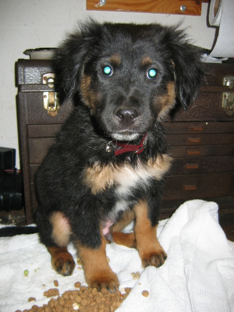 I got a call from an aquaintence saying he found a puppy. He said he almost hit it in his car. He asked people that were sitting on their porches if they knew who's dog it is. They said that someone had dumped him.