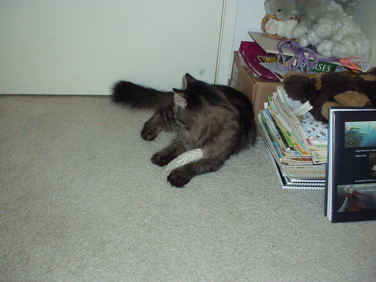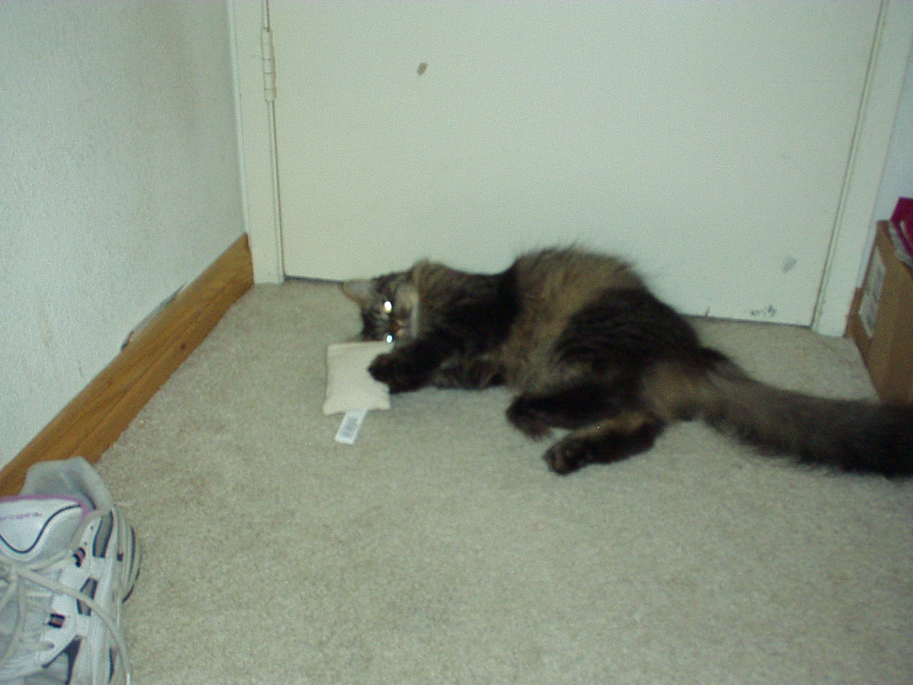 Princess was playing with the catnip bag that I got her for Christmas. She runs to it when I throw it somewhere. (if she feels like playing)