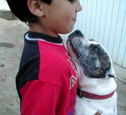 This is my son and Tequila, a pit bull we rescued and rehomed - into a home with two small children. Ten years later, she is still the love of their lives.