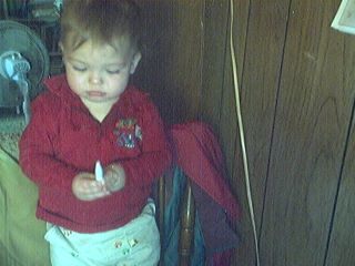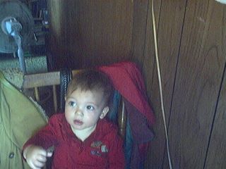 He is doing much better now and everytime we take him somewhere people comment on what a happy baby he is (he usually gives them a big smile). He loves to wave bye-bye. He's walking a little better but is not doing it exclusively. The doctor told us that the month Stephanie had him she set him back 2 or 3 months and to not worry about him walking because he'll catch up. His ears seem to be doing them a lot better and he doesn't tug on them as much.