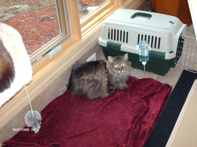 What's a gal gotta do to get some respect around here? I brought out the microfiber throws and, of course, the Fur Posse snatched them up. So yesterday I decided to buy one just for myself. Pidgelet and Boo Bear claimed it immediately. At least Yodie, Creamsicle and Coco Puff are sleeping in their cat condos and beds but that'll change. So looks like it's sweaters for me this year. From l. to r. there's Boo, Pidgelet, Specs, Yodie and Creamsicle. One more pic coming of Coco Puff who wouldn't cooperate and show his pretty blue eyes so he looks almost black. No Calico Queen this year.
