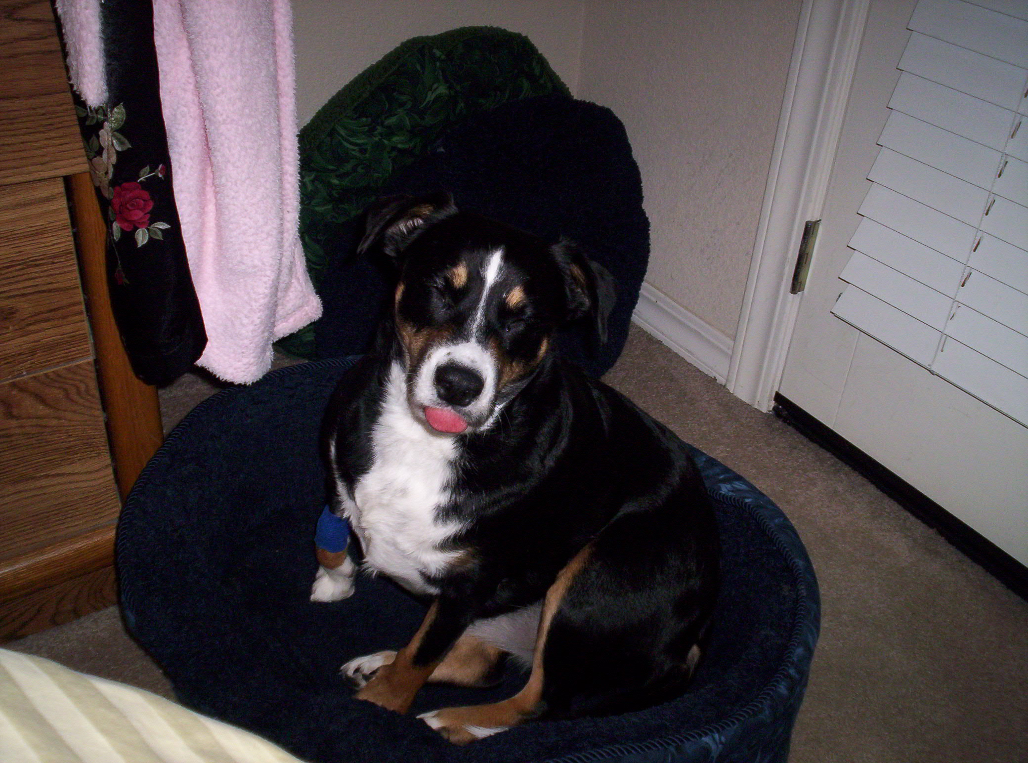 Karma posing as roadkill. Usually she is on her back, but I couldn't find a picture.