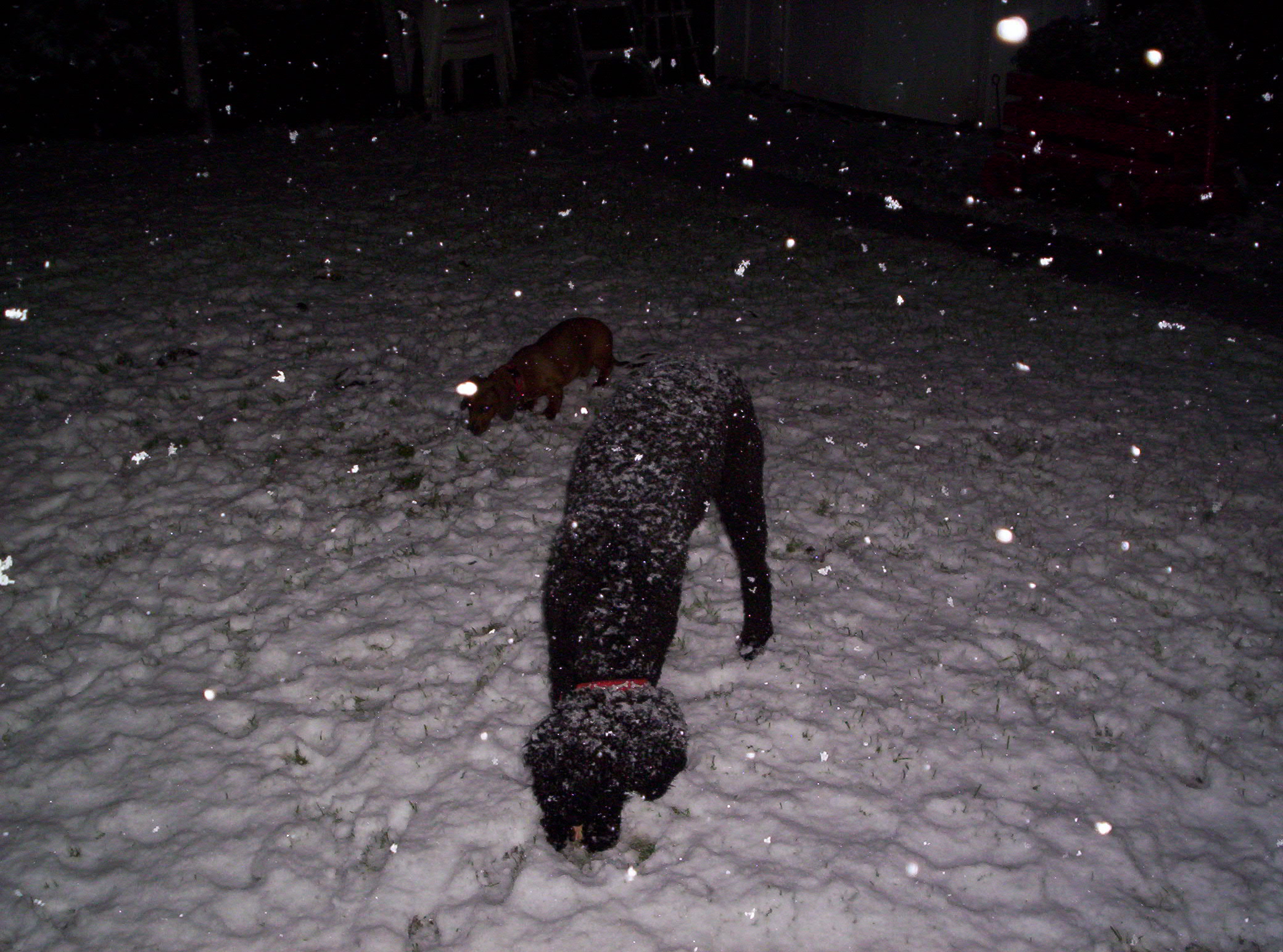 Ha ha! How cute. Pups are so funny when they first play in snow. Mine always tried to eat all of the snow!![]()