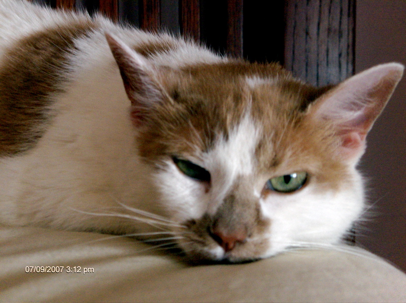Blossom is quiet old lapcat who purrs very loudly with contentment and enjoys human companionship. She does get annoyed with other cats who come too close to her. But doesn't seem to mind dogs. Blossom has been diagnosed with hyperthyroidism, which is a treatable disease. Right now she is on 1 pill a day and you just put it in her wet food and she swallows it no problem. No having to shove a pill down her throat. She is gaining weight and her fur is becoming soft and silky again. The shelter is willing to pay for the meds & routine blood checks if someone is willing to let her live out her days with them instead of dying alone in the shelter. Blossom still has spunk left in her. She will follow you around when she's not sleeping and loves attention, petting and giving headbutts. She's not ready to leave this world just yet. Email kcammack1@yahoo. com if you can be of any help for this poor cat!!