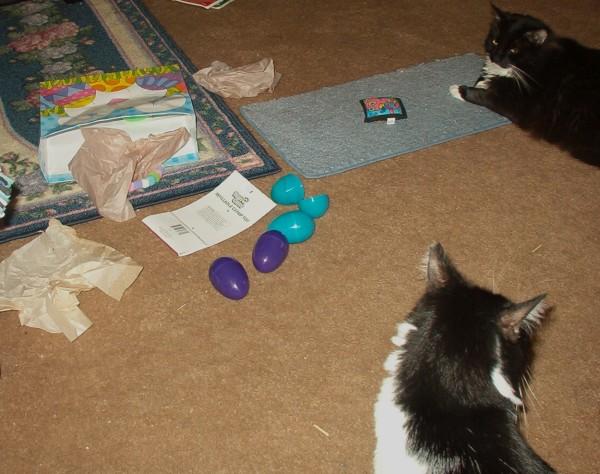 But back to the subject at hand -- the dear LionHart kitties having fun on Easter! Kitties, these are some eggs for you to have fun with!