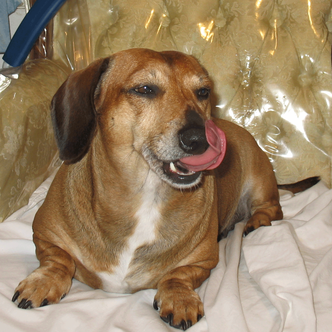 Rehomed from a show family, elderly woman, now a pampered lap dog living the high life, got 3 doggie pals living with you, sounds like life is SWEET for you, Tobster!