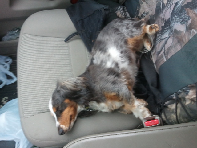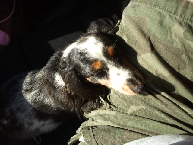 Dot finally calming down during the trip to the trail.