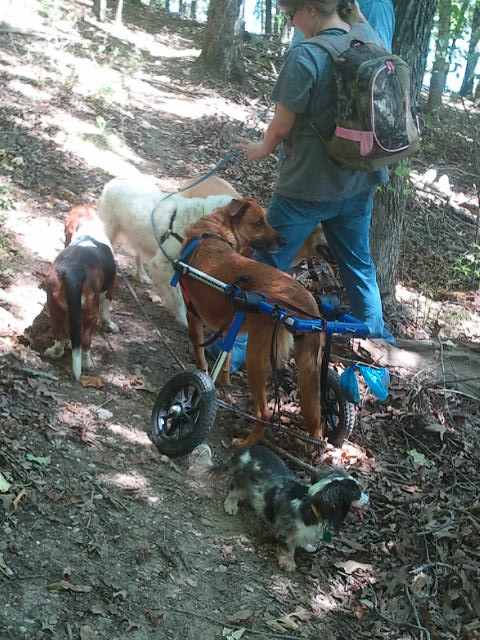 I didn't get a good picture of her (she can be seen between the leashes in the rest of the pack picture) but we had Maggie the Daschund with us who walked the whole way. She did have to be carried on the boardwalk because she couldn't walk on it.
