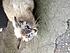 Frankie is severly malnutritioned and very bony. I don't know the sex or age. I think he's a kitten though. He's blonde with bright blue eyes, beautiful. He seems friendly because I can pick him up and feed him. He meows A LOT!
