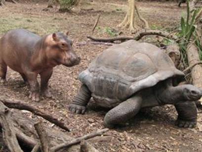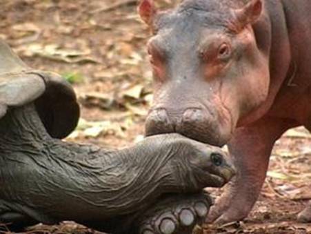 "It is incredible. A-less-than-a-year-old hippo has adopted a male tortoise, about a century old, and the tortoise seems to be very happy with being a 'mother'," ecologist Paula Kahumbu, who is in charge of Lafarge Park, told AFP.
