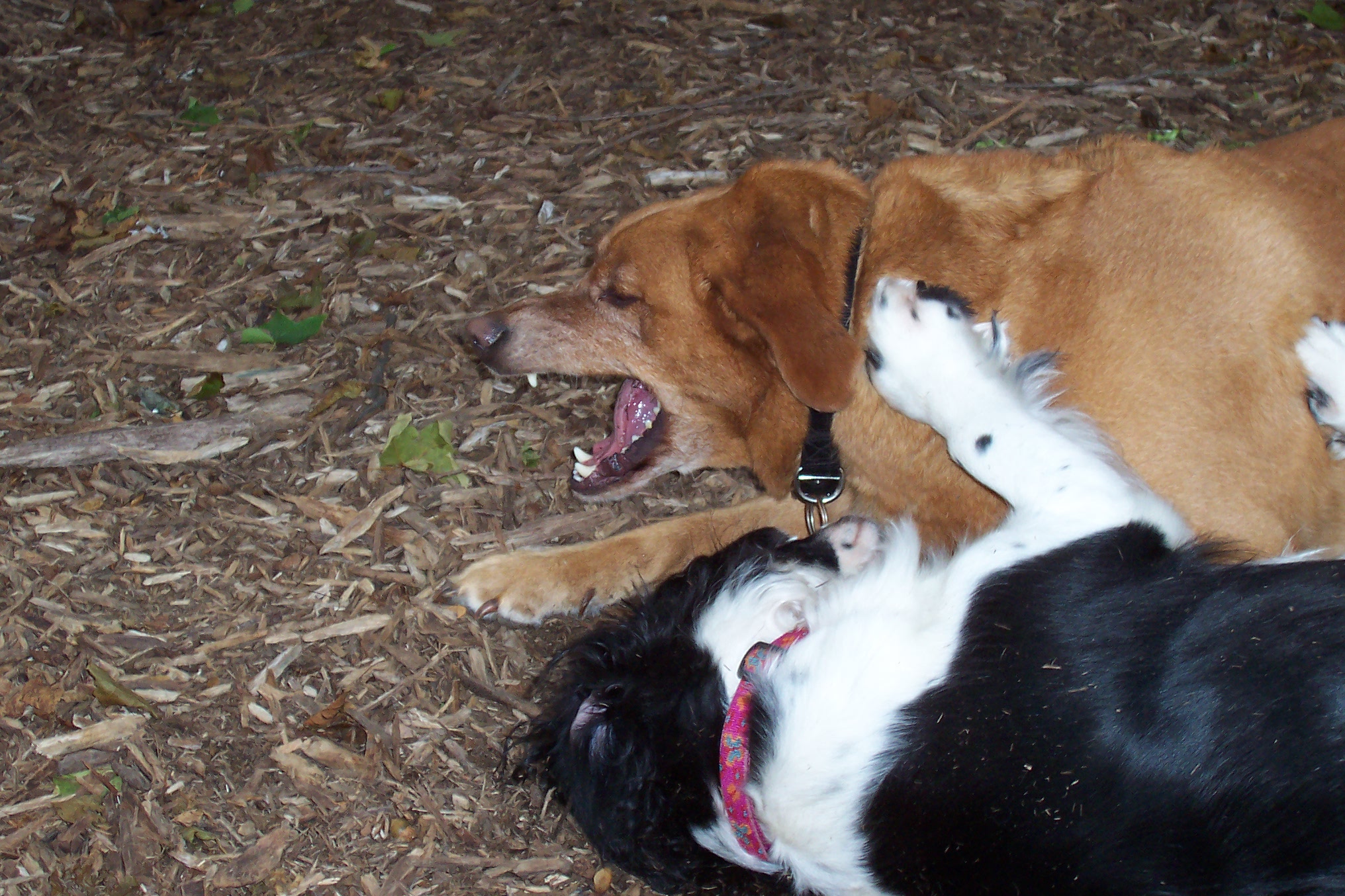 Winchester wasn't that bad, he would play fetch with us and demanded to get a good belly rubbing a few times a day. He is six years old. We got a puppy Lou Lou in Feb. 2006 and he has spunked right up, the puppy makes him stay active, good luck sleeping when Lou Lou is awake!! Notice the lay down fighting, that's because Lou Lou will bite his feet not because he is being lazy! But I also wonder if your dog might have a thyroid issue. I have thyroid disease and get very tired when I need my meds adjusted, maybe you should talk to your vet about that and they can do blood work to check it!
