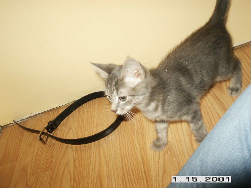 I havent been on here in a while as I have been Very sick, the last few weeks, I still am, but a little better i guess. Anyways, I went to the grocery store today, and on the way I found a kitten! he is the cutest little guy! He is a grey tiger DSH. He looks to be about 8-10 weeks old. He has a few fleas, but We will take care of that, other than that he is a great little guy. He is very affectionate, and a Big Purring machine! He has followed me around the house all day. We havent totally decided on a name yet, but we are Leaning towards Loki. I am hoping to get pics up later tonight, or early tomarrow morning. As my batteries in my camera died on me.