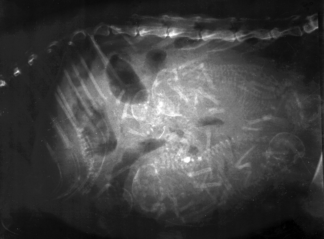 Attached is the scanned x-ray plaque.Could you guess how many babies she is carrying?