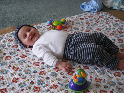 Yes BCmom he is a very happy baby apparently, he laughs alot and gets in hysterics and ends up with the hiccups a lot.
