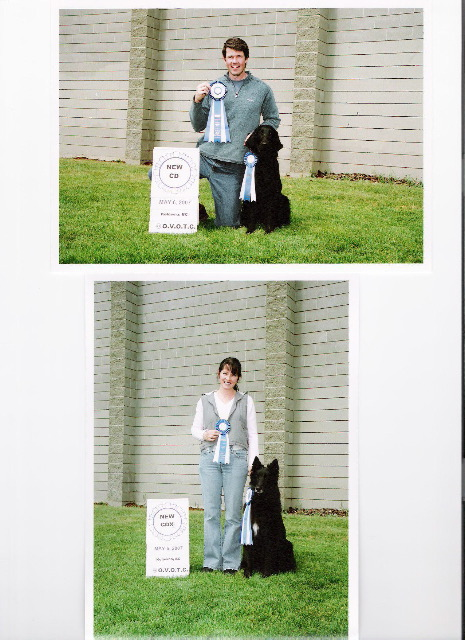 Jake's son (Visa's nephew, Jag's cousin, etc lol), Stormy (whose registered name and other titles escape me), just recently received his CDX. Yay Stormy! I attached his photo. Above is Bella, their flat-coated retriever, who just obtained her CD.