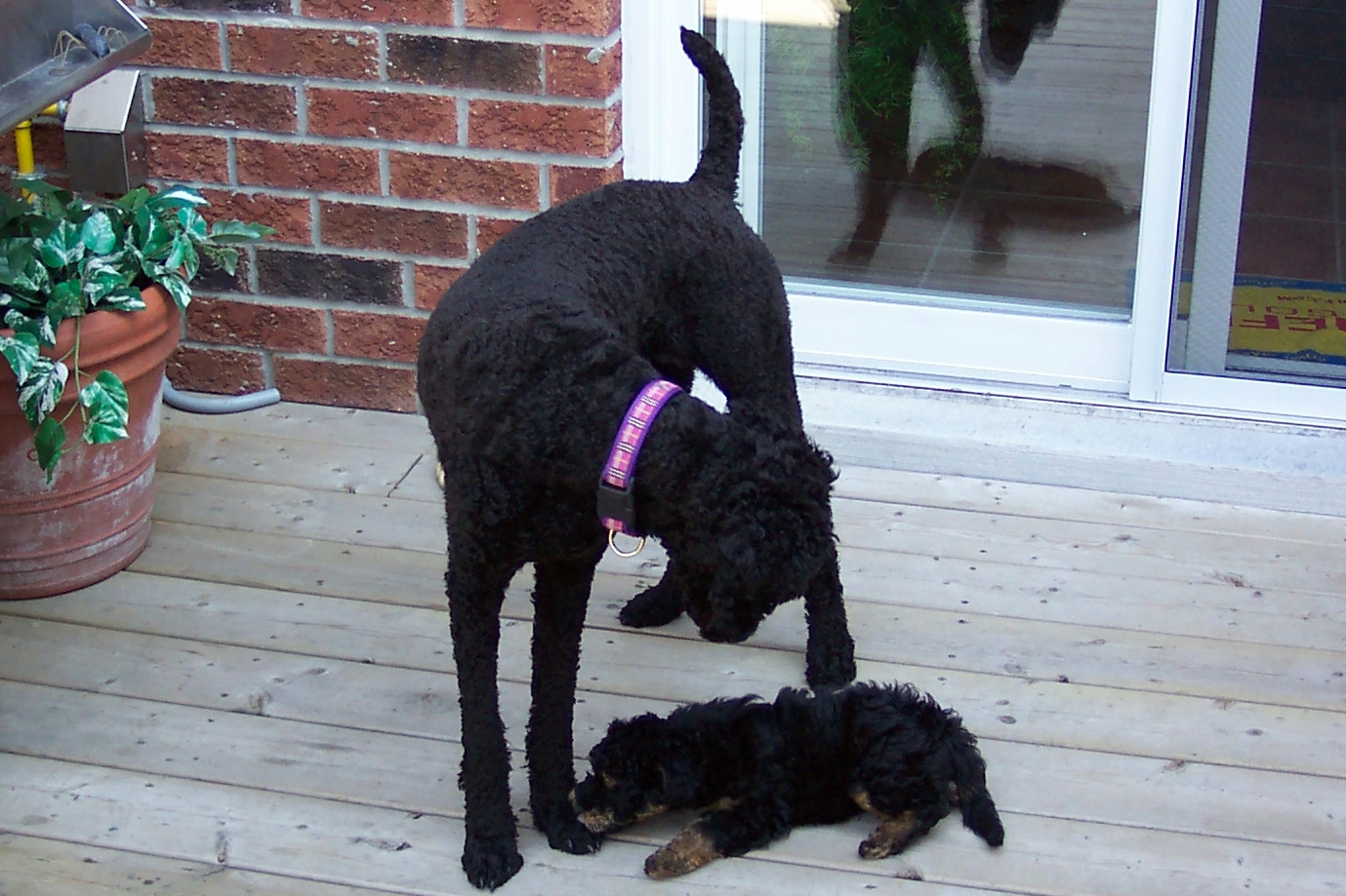 What a good girl. I am sure you will help to teach this new little one good doggie manners. Does he live nearby?