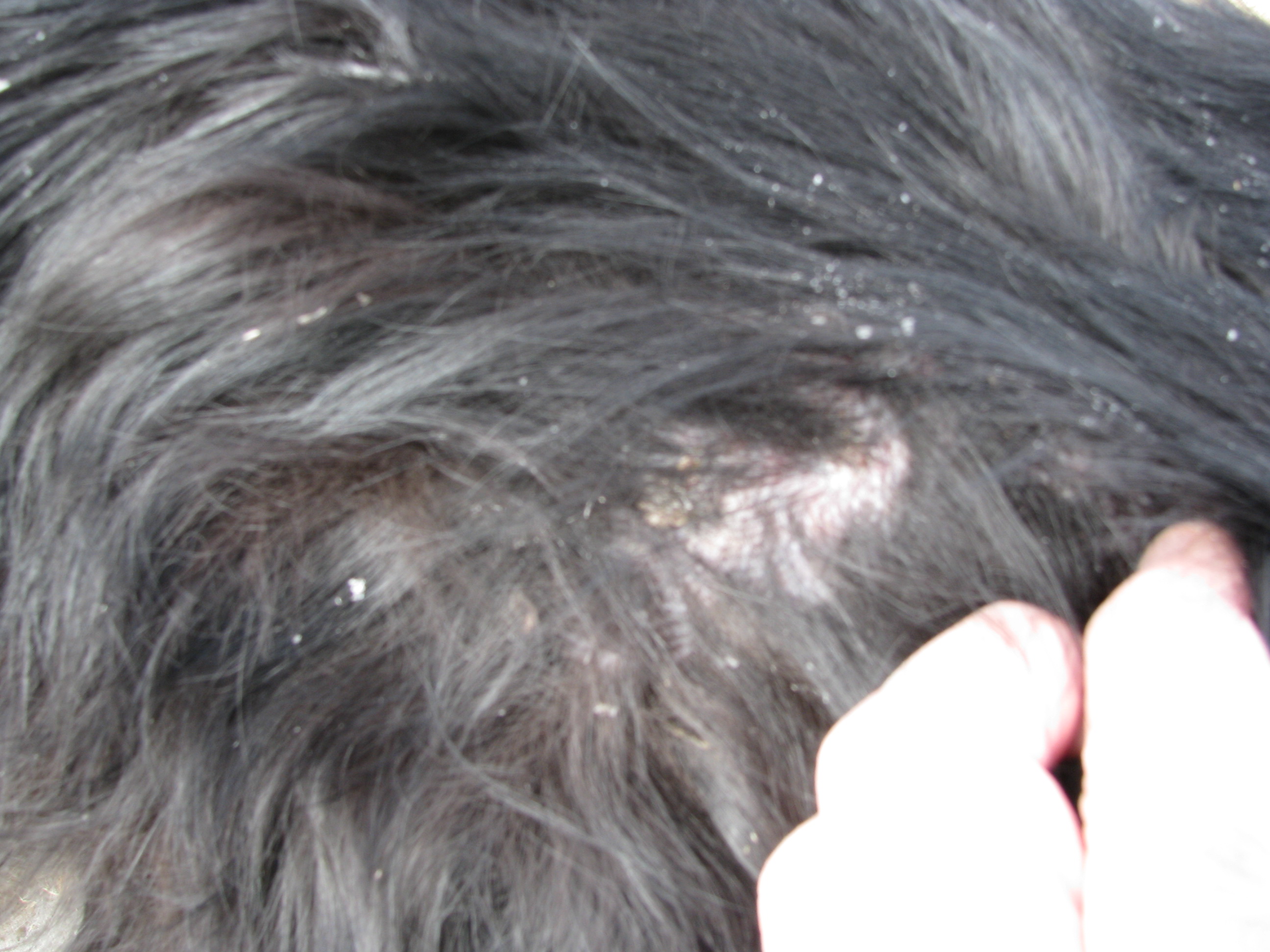 Help Anyone! Two years ago my 11 years old Golden Retriever / Black lab mix Jet, started getting bad dandruff and lost his hair. After losing his hair he developed scabs, which are still present. The hair grew back, somewhat.