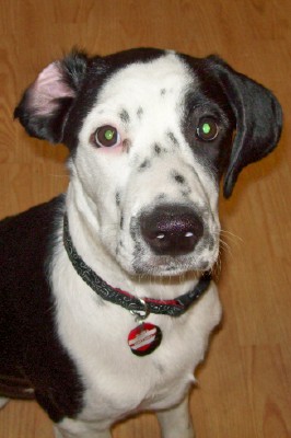 I guess the floppy ears are all he gets from his mom!