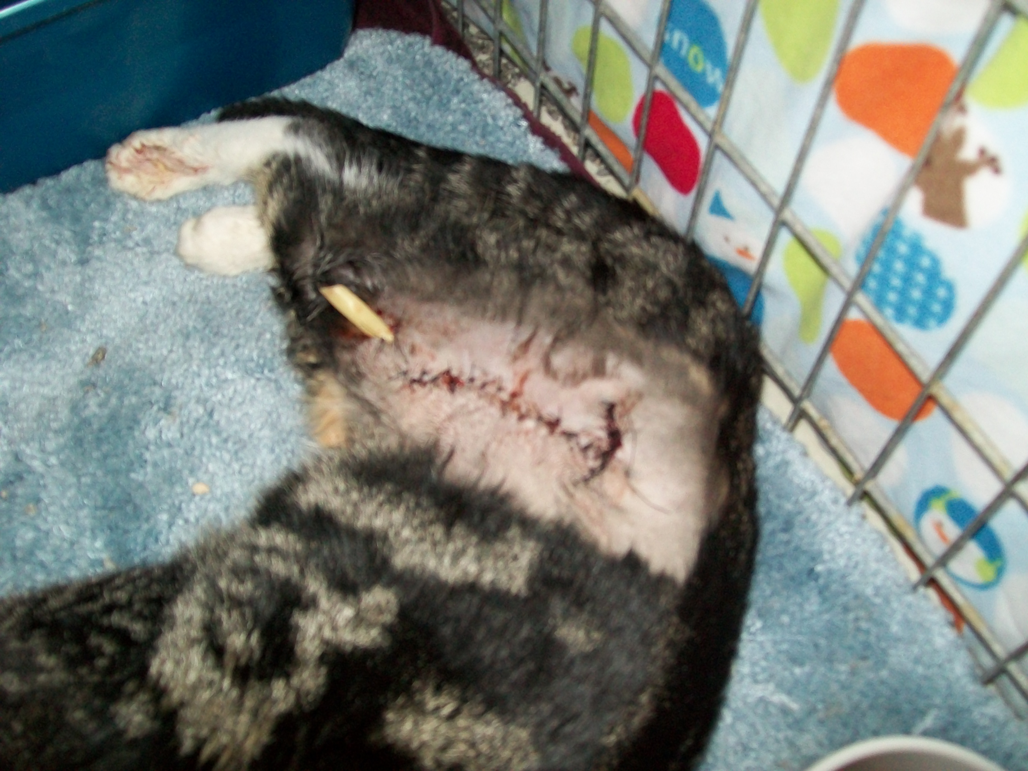 Aweee poor wittle one.. Give her Huggss & Whisker Kissess from us.. Sending Lot of Prayers that she heals fast & is in no pain..