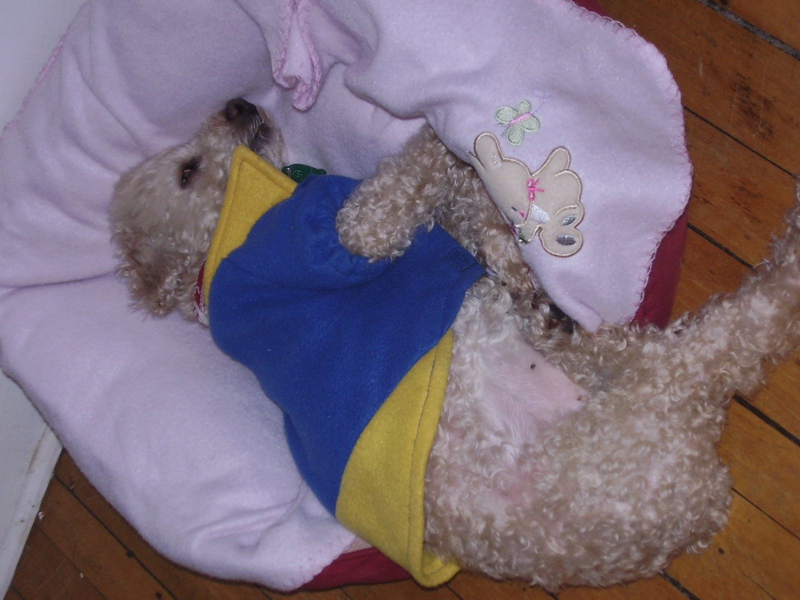 However since our rescue got him he has learned to be a real dog and loves to cuddle, play and sleep on the bed with us! Poor guy had very bad teeth which have since been extracted and so eats his kibble moistened these days but enjoys it very much along with soft treats. Ben gets the crunchies , Finny gets the softies lol! We will be having another adoption day on the 30th so wish him luck!