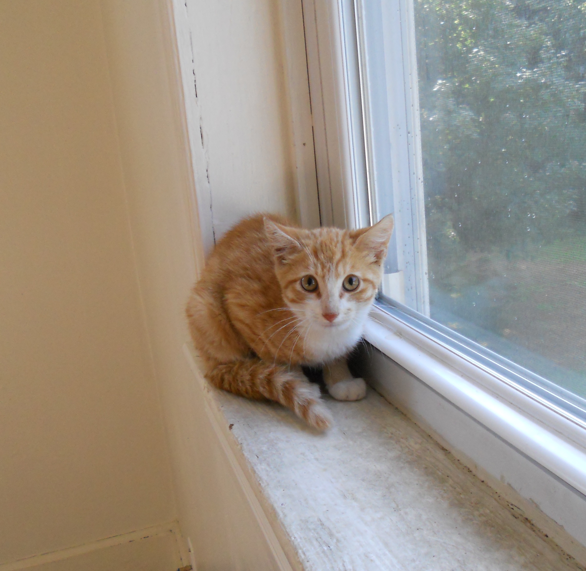 I put this kitten upstairs with the other kittens because my sister said they know each other and they have been seen eating food from her front porch together.