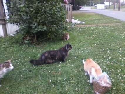 These cats deserve a chance to live a happy life. I'm going out there tonight to try to trap the tiny kitten because it doesn't have a tail and I'm not sure if it was born that way or not and it needs to be vet checked, so does Fluffy the old one with matted fur but I just don't have the extra room for both right now. If you are able to take in 1 cat, please let me know by sending me an e-mail at [email protected]