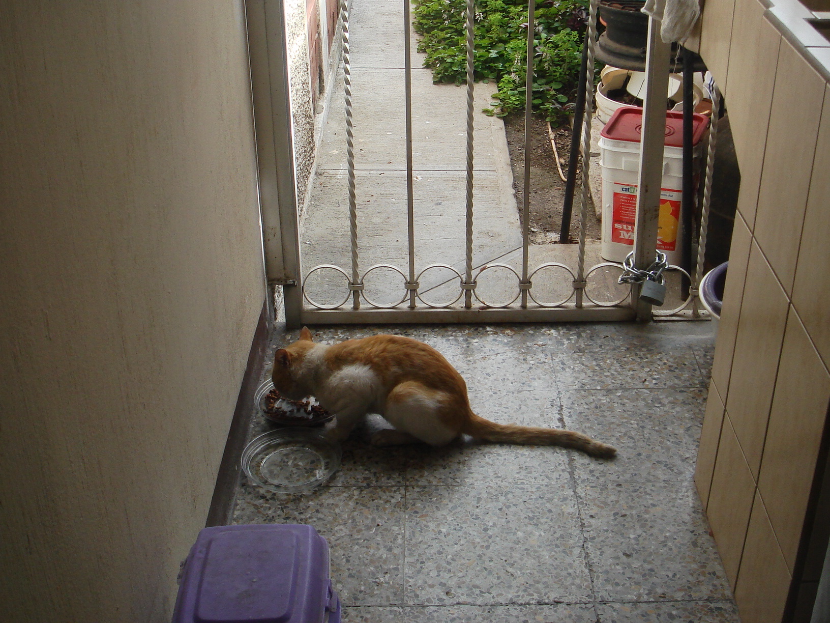 Poor thing started coming to our home some months ago, I thought he was giving Sophie a hard time and being bully with her and I used to make noises to scare him off, but then I realized it was HER who got extremely mad and dramatic every time he was around because he never did anything, so now I just keep the door closed and let the little guy hang around in the laundry area -especially on rainy evenings- and try to distract Sophie to keep her away from him.