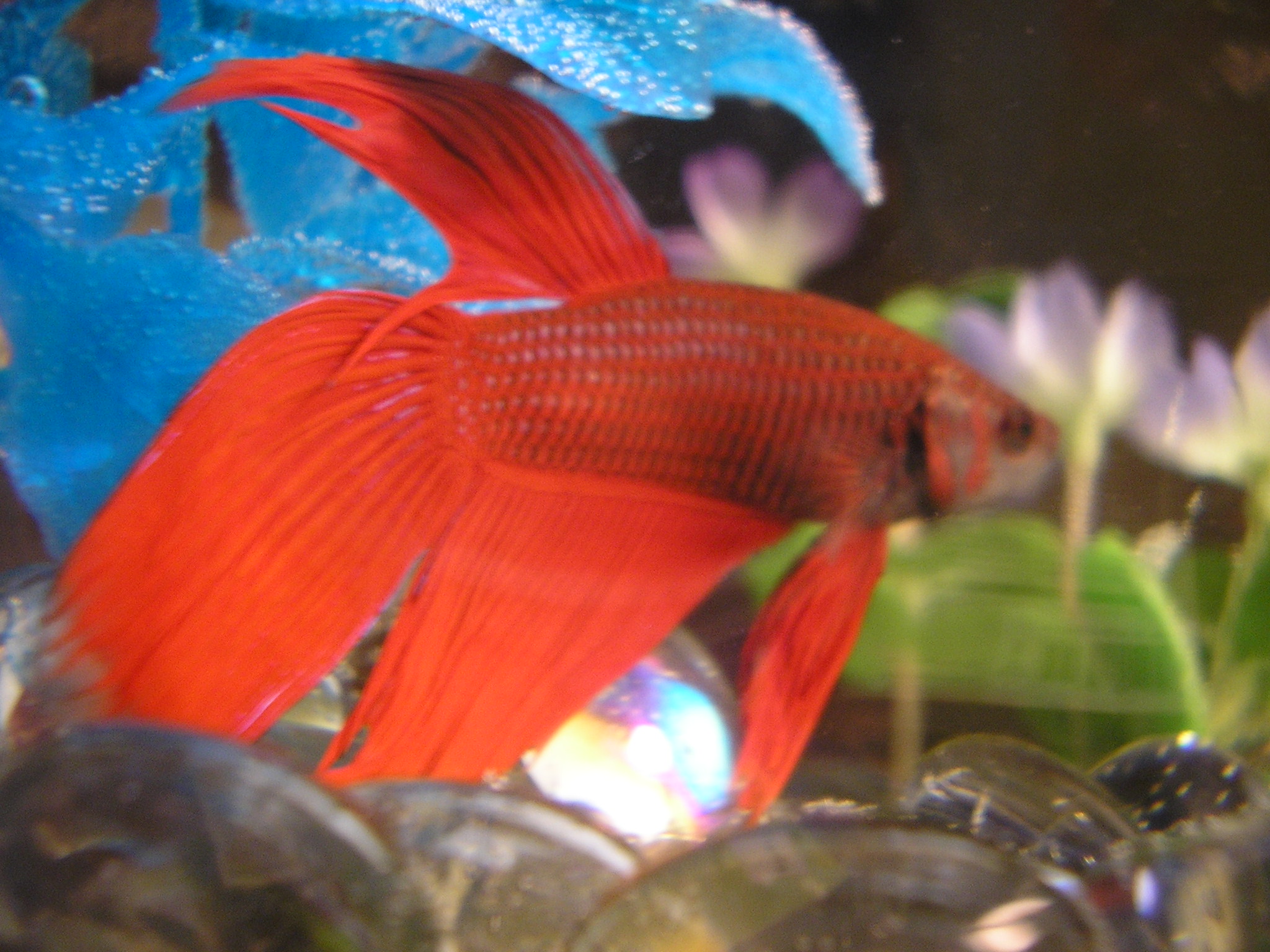 A red male betta.His name is Dexter, and he is a little WalMart rescue.